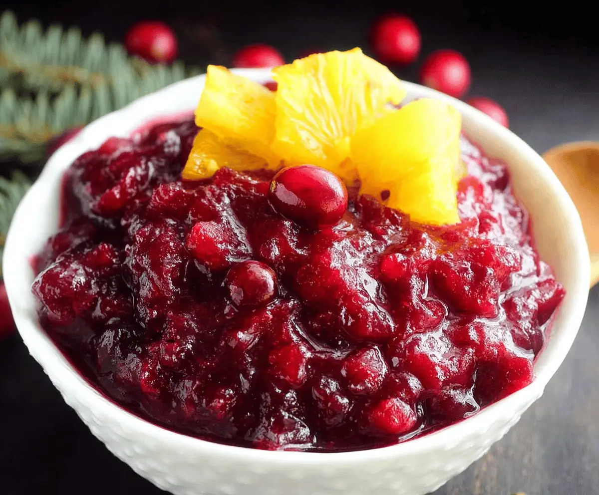 You can store the Pineapple Cranberry Orange Sauce in an airtight container in the refrigerator for up to one week. If you want to keep it longer, consider freezing it in a freezer-safe container where it will last for about 3 months. Thaw it in the fridge overnight before using.