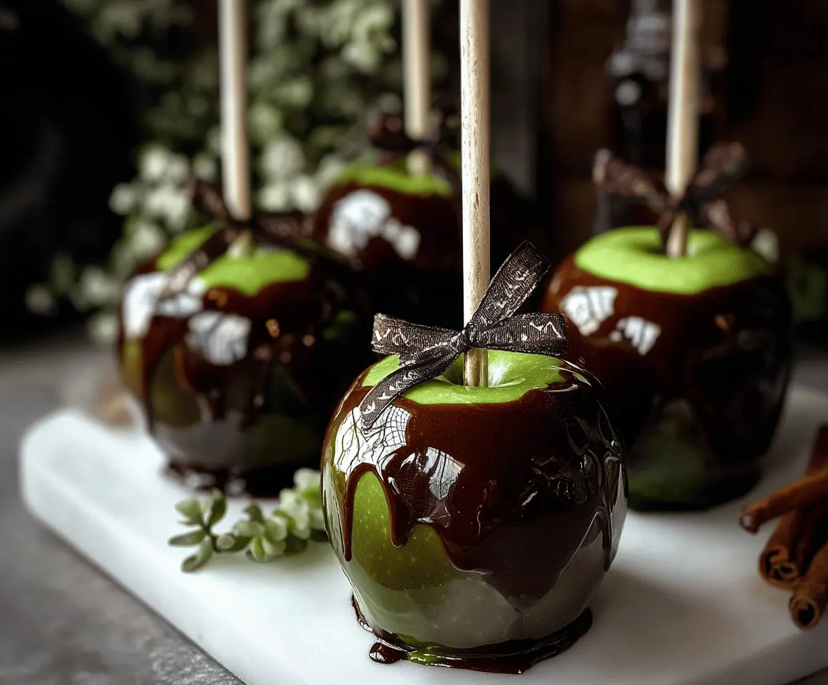 Enjoy your spooky, glossy Poison Apple Caramel Apples with that perfect crunchy shell and sweet, tart bite! Perfect for Halloween or any occasion where you want to impress with something fun!
