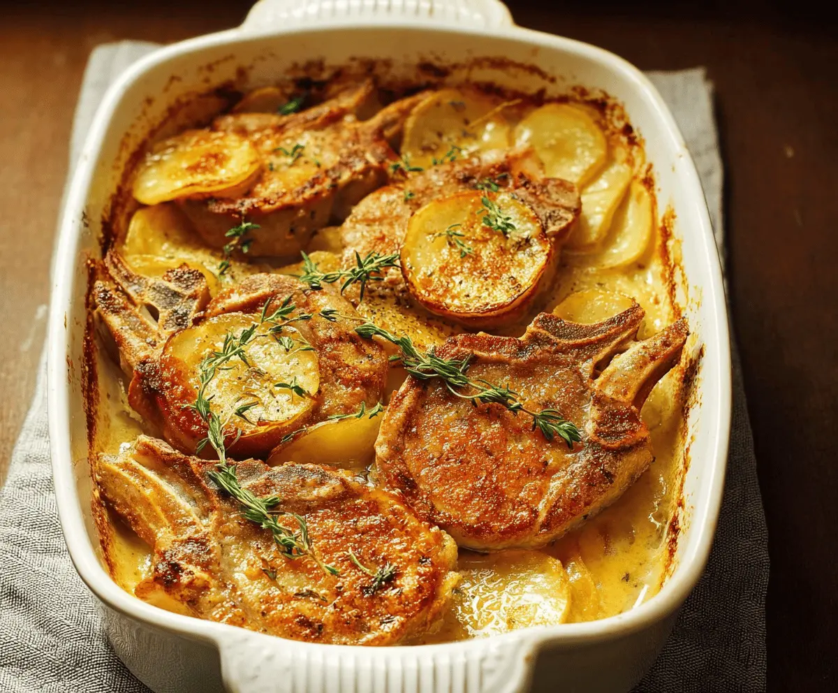 Enjoy the cozy flavors of this pork chops and scalloped potatoes casserole—it’s sure to become a favorite family dish!