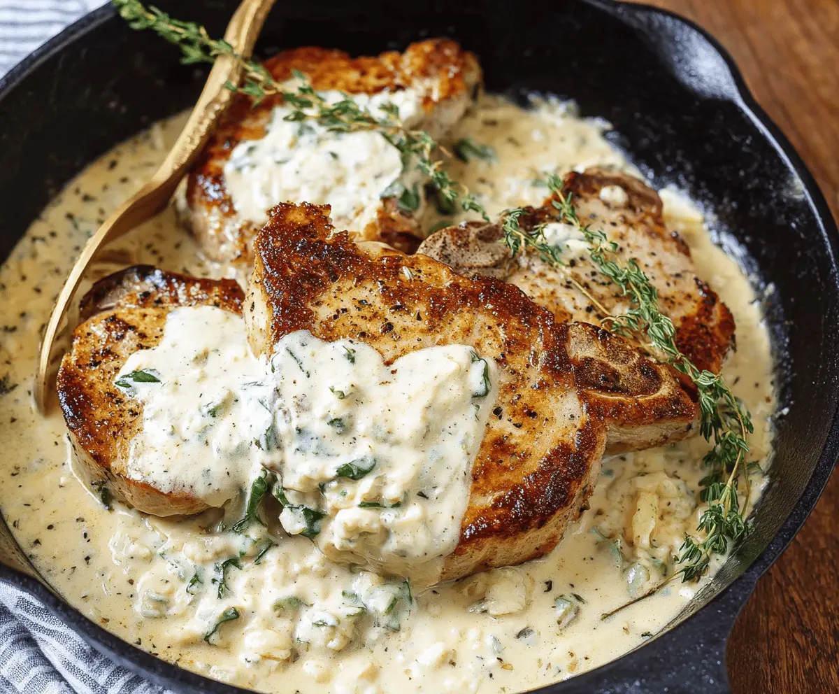 Return the pork chops to the skillet, spooning the creamy sauce over the top. Let them warm through in the sauce for about 2-3 minutes.