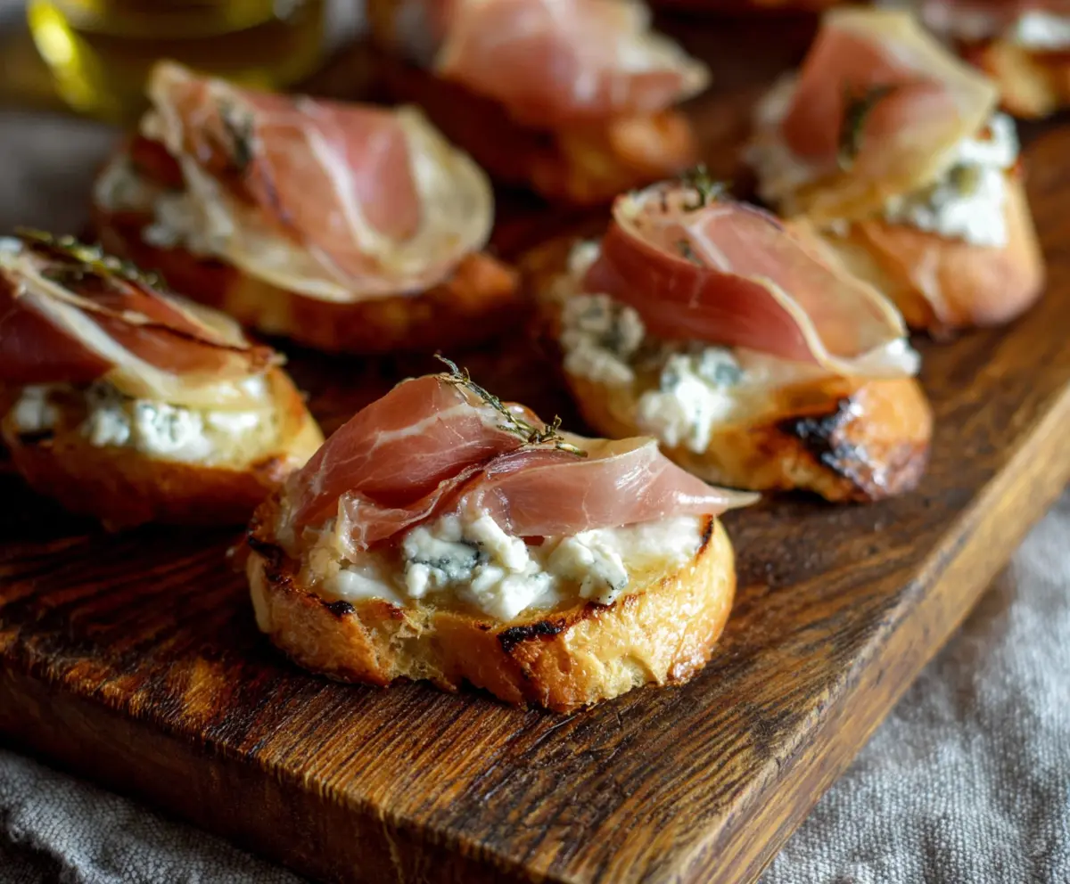 How to Make Prosciutto Pear Gorgonzola Crostini