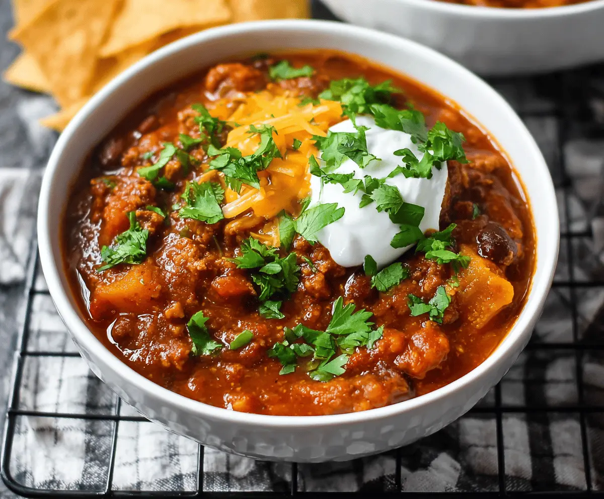 Pair your chili with some crunchy tortilla chips or warm cornbread for the ultimate cozy meal. Enjoy every bite!
