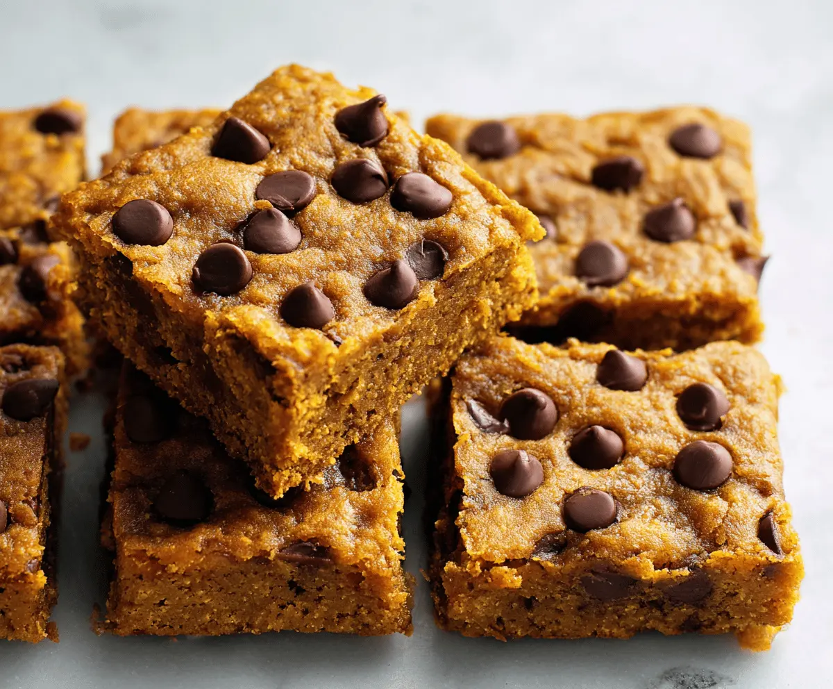 Serve these soft, moist pumpkin chocolate chip bars as a delightful autumn treat or dessert that everyone will love!