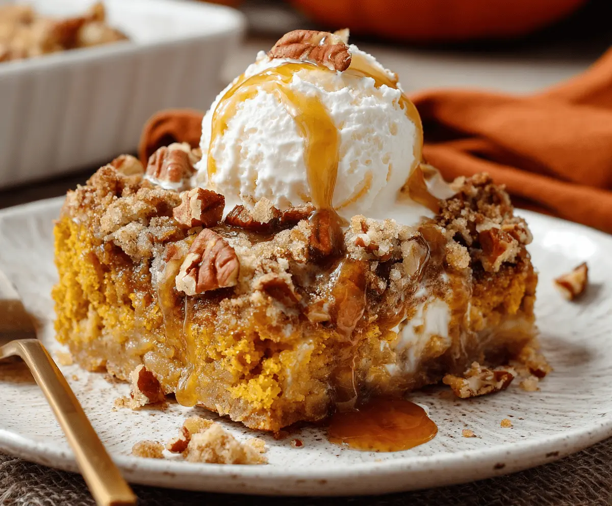 Enjoy this moist, spiced pumpkin dessert with a crunchy pecan topping that’s perfect for fall gatherings! It’s sure to be a hit at any get-together. 😊
