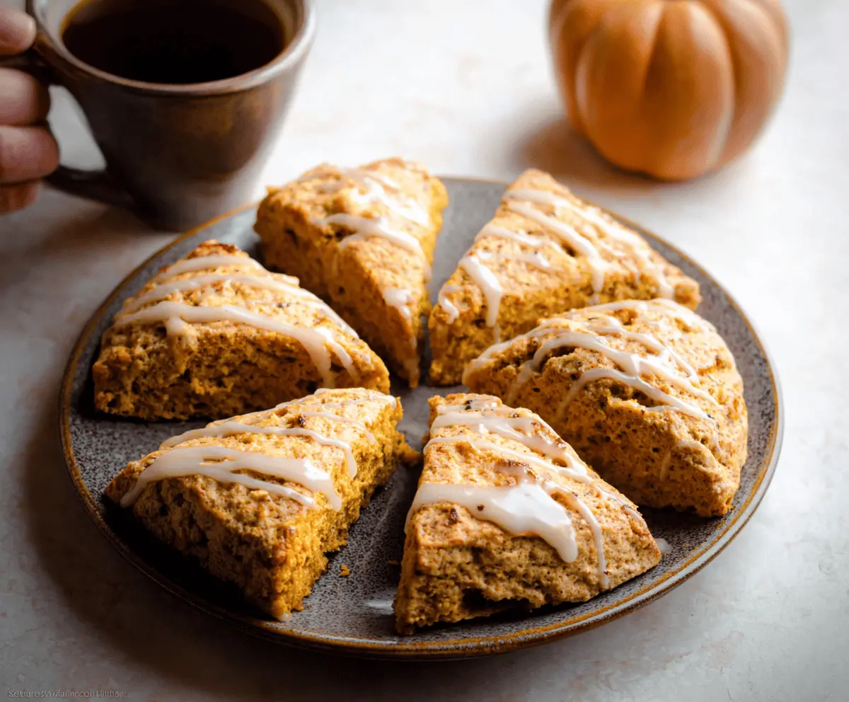 These moist, fluffy pumpkin scones are perfect with a cup of coffee or tea. Enjoy the cozy fall flavors!