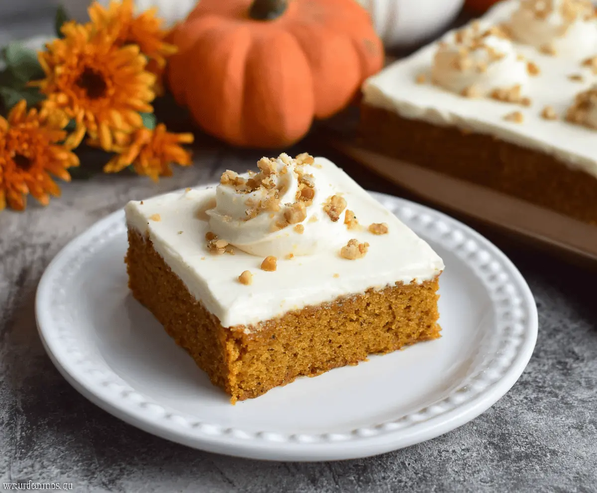 Enjoy your delicious pumpkin sheet cake topped with luscious cream cheese frosting!
