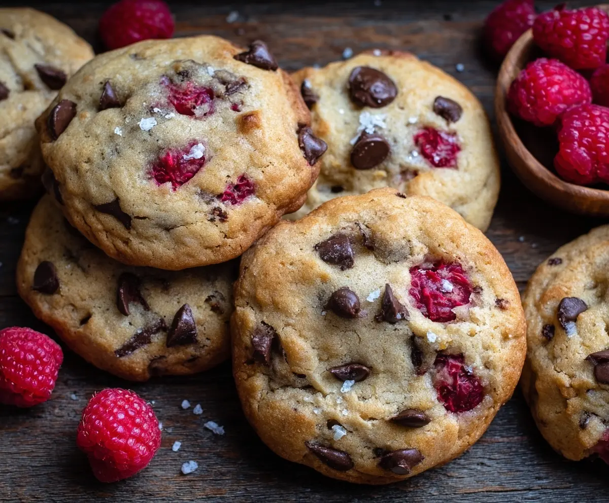 These raspberry and chocolate chip cookies are a delightful treat! The sweet berries mixed with rich chocolate create a tasty surprise in every bite.