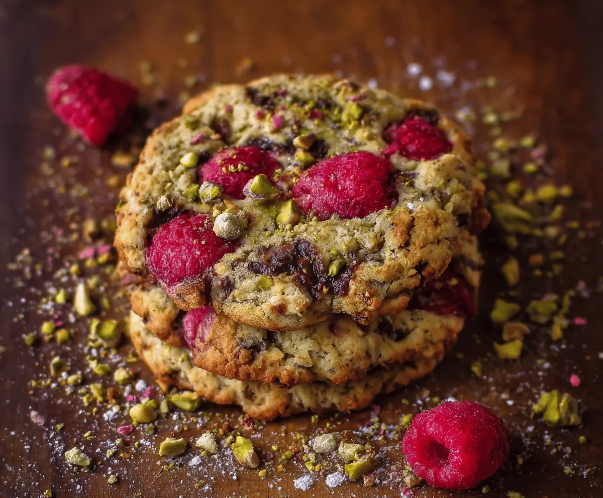 These raspberry and pistachio cookies are a tasty treat! Soft and chewy, they have a sweet burst of raspberry and a nice crunch from the nuts. Perfect for snack time!