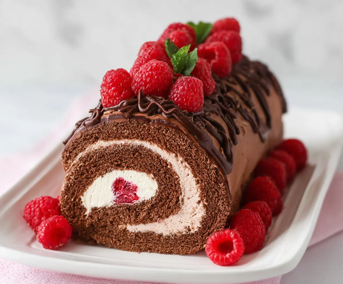 Spread the chocolate frosting evenly over the outside of the rolled cake. Drizzle some additional melted chocolate on top and decorate with fresh raspberries. These little touches will make it look stunning!