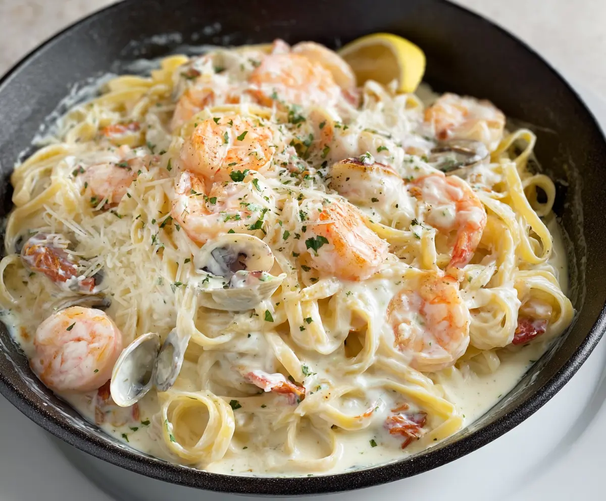 Enjoy this rich and luxurious seafood Alfredo pasta, perfect for a special occasion or a cozy dinner at home!