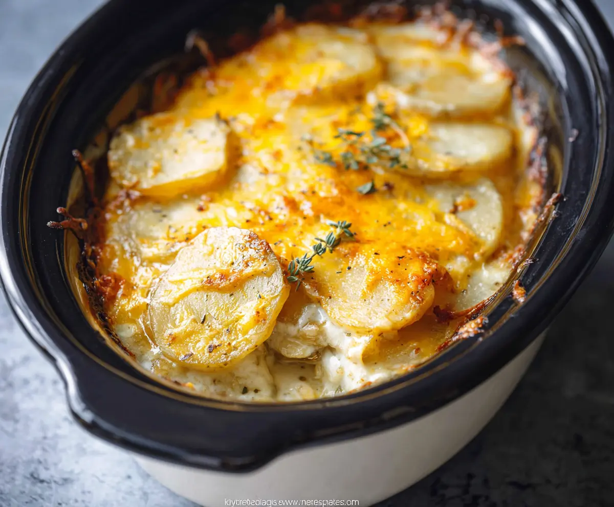 Cover the slow cooker; set it to cook on low for 4-6 hours or on high for 2-3 hours. You’ll know it’s done when the potatoes are tender and the top is bubbly and golden.