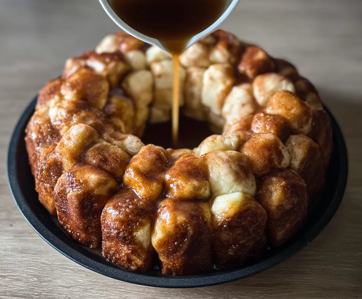 Drizzle the warm caramel sauce generously over the pull-apart bread while still warm. Serve immediately for the best gooey, cinnamon-sugar experience!