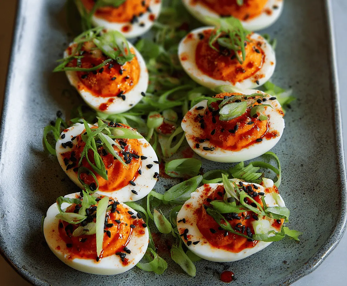 Gochujang: This Korean chili paste gives the deviled eggs their unique kick. If you can’t find it, you can substitute with sriracha or chili garlic sauce, but adjust the quantity to taste, as these options can vary in heat.