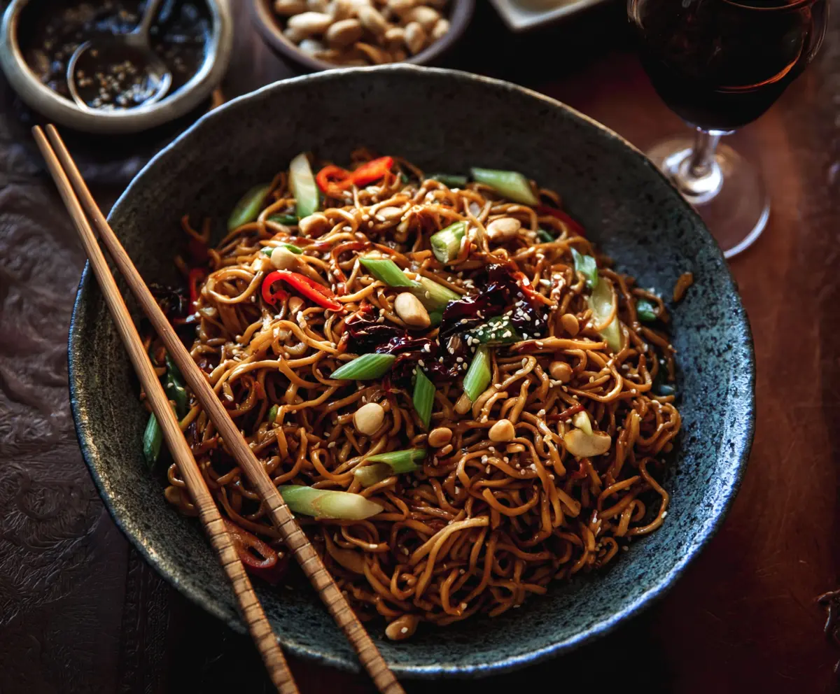 Dig in and savor the blend of spicy and savory flavors in every noodle bite!