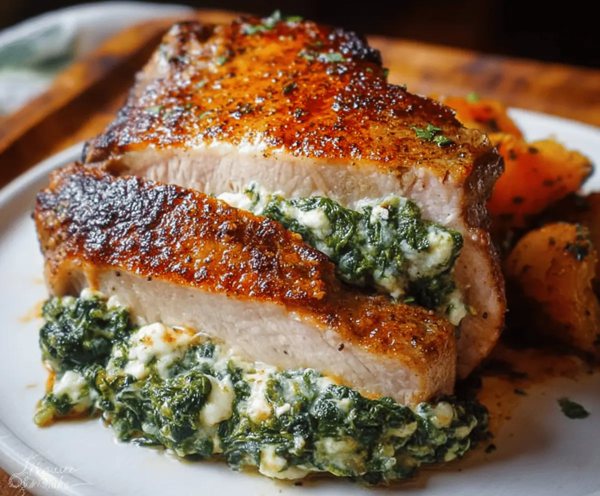 Enjoy your juicy, flavorful Spinach and Cheese Stuffed Pork Chops with a side of roasted vegetables or mashed potatoes! Bon appétit! 😊