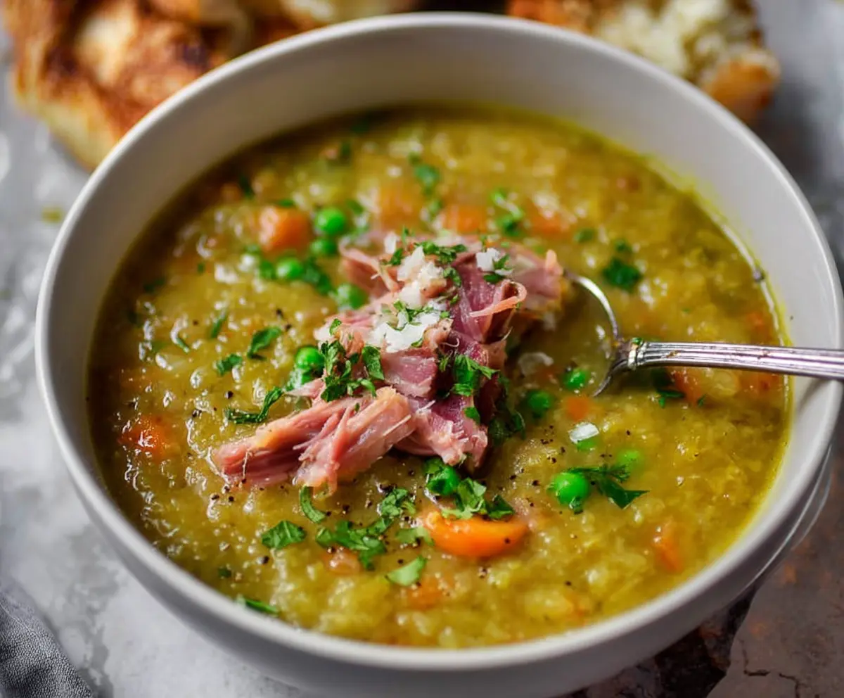 This warm split pea soup with a tasty ham bone is the perfect comfort food. It’s creamy, hearty, and full of flavors that make you feel right at home!