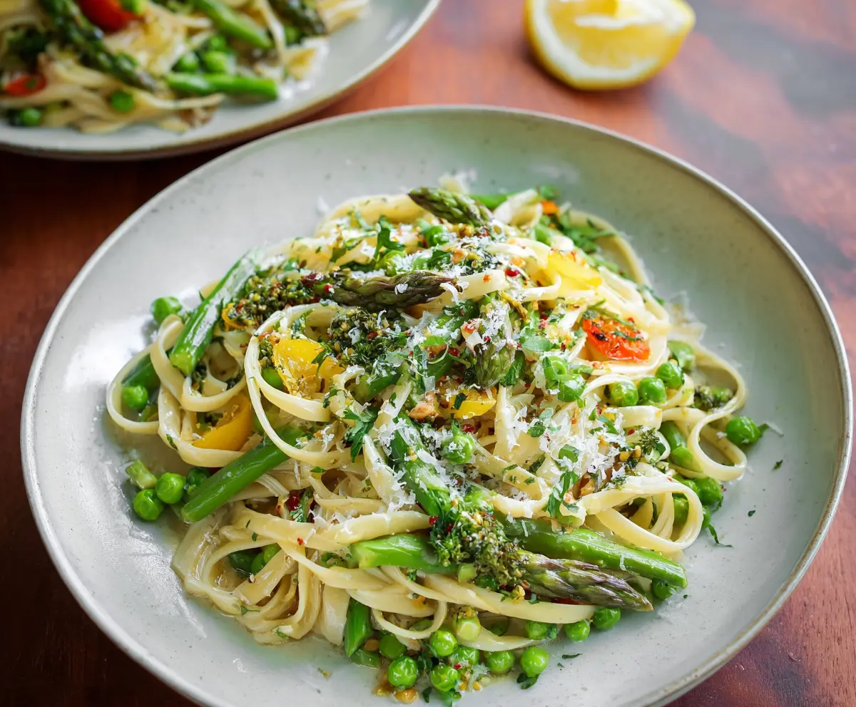Give it a taste and adjust the seasoning if needed. If you like, add a squeeze of fresh lemon juice for an extra burst of brightness! Serve your beautiful Spring Vegetable Pasta hot, topped with additional Parmesan cheese and a sprinkle of fresh parsley. Dig in and enjoy this vibrant dish!