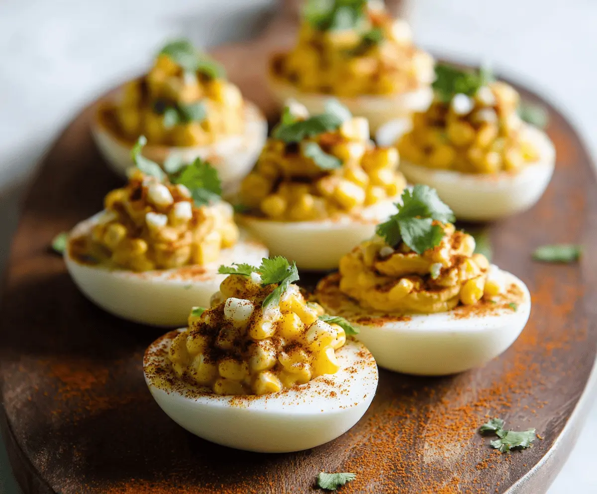 These Street Corn Deviled Eggs are a fun twist on a classic favorite! With sweet corn, creamy filling, and a sprinkle of spices, they bring a burst of flavor.