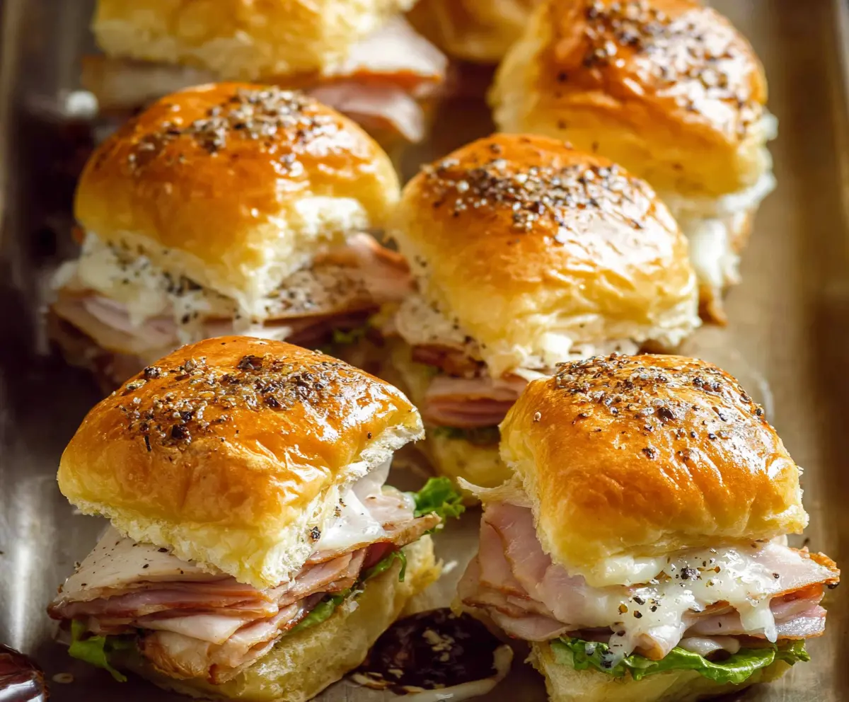 These Turkey and Swiss Sliders are mini sandwiches that everyone loves! They are packed with juicy turkey and gooey Swiss cheese, all tucked inside soft slider buns.