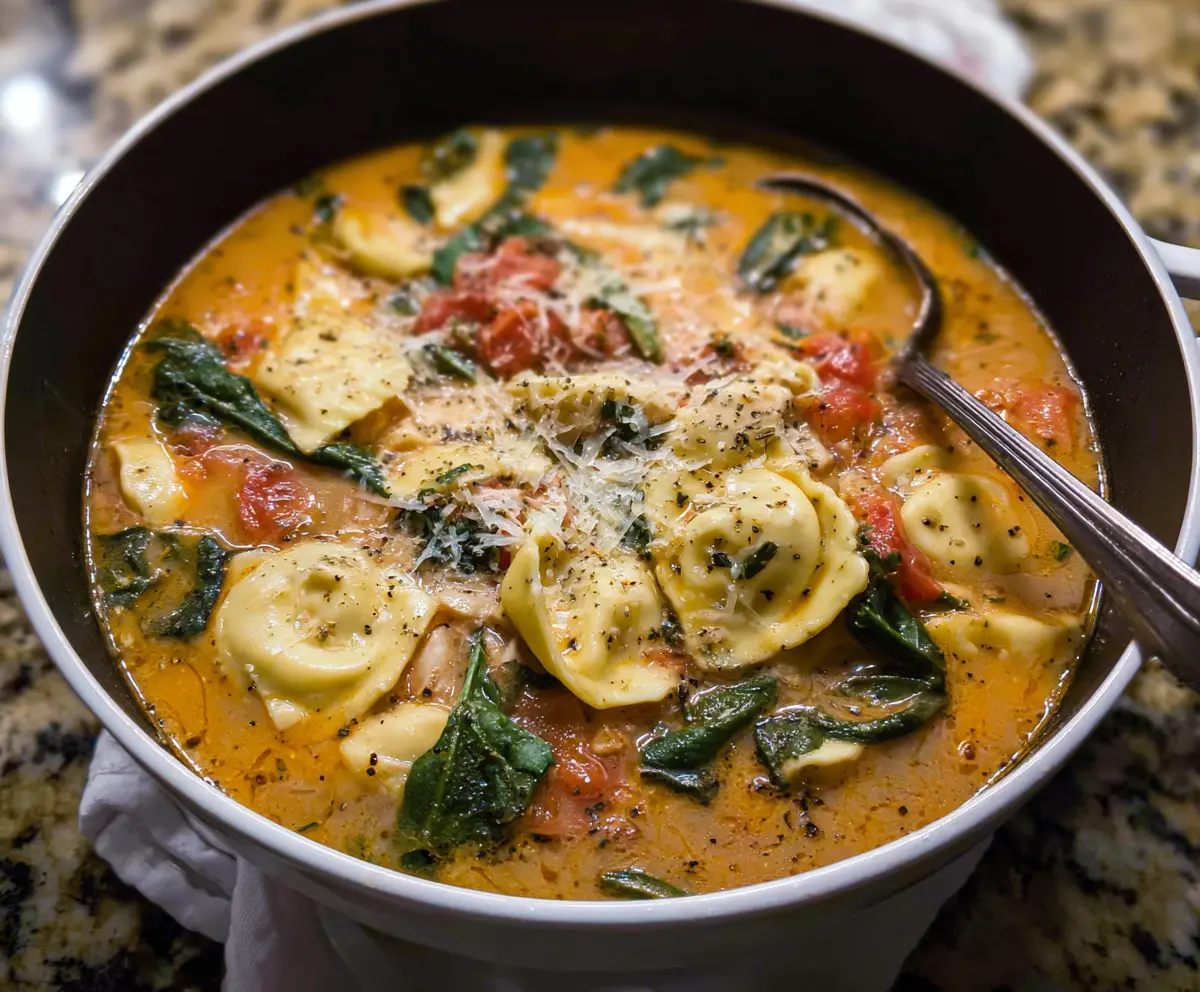 Enjoy this hearty Tuscan Ravioli Soup that’s creamy, cheesy, and bursting with savory Italian flavors!