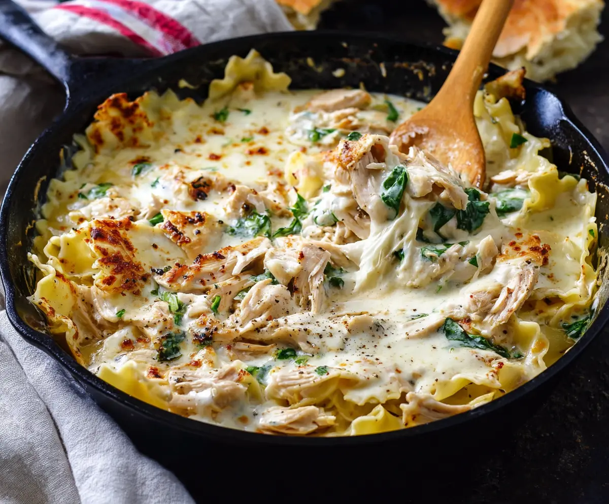 This White Chicken Skillet Lasagna is a creamy delight loaded with tender chicken, noodles, and gooey cheese, all cooked in one pan. It’s easy and perfect for those busy weeknights!